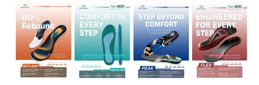 At FaW TOKYO, Foamwell will present a wide range of high-performance and sustainable insole materials, including: