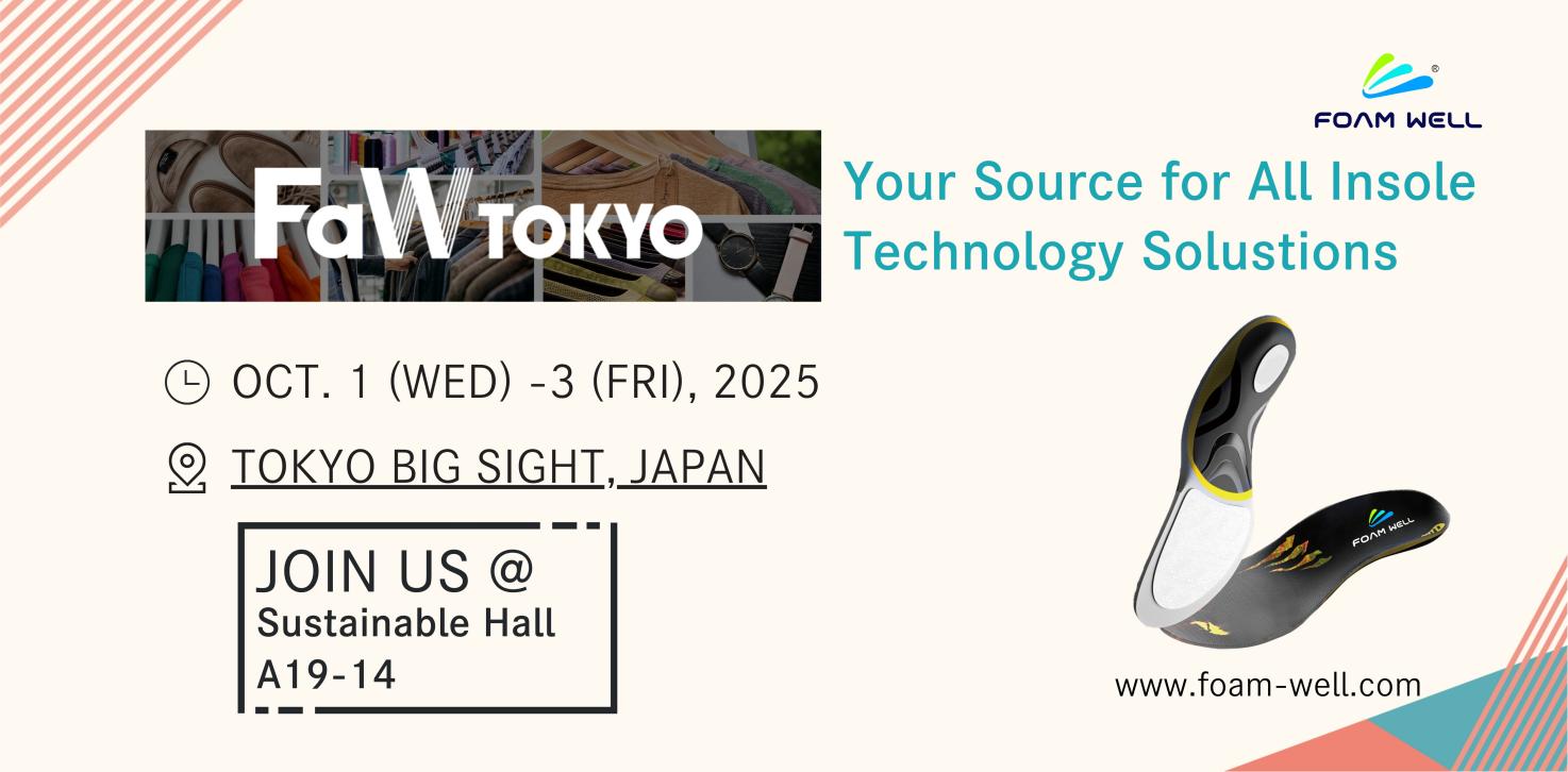 We warmly invite all footwear professionals to visit Foamwell Booth A19-14 at FaW TOKYO. Let’s explore how innovative and sustainable insoles can shape the next generation of footwear.